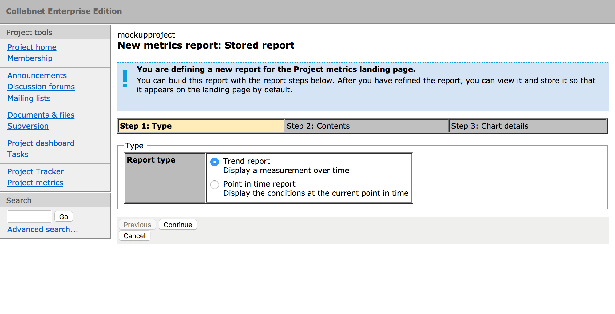 Design of a new reporting and project analytics tool for the CollabNet Enterprise environment.